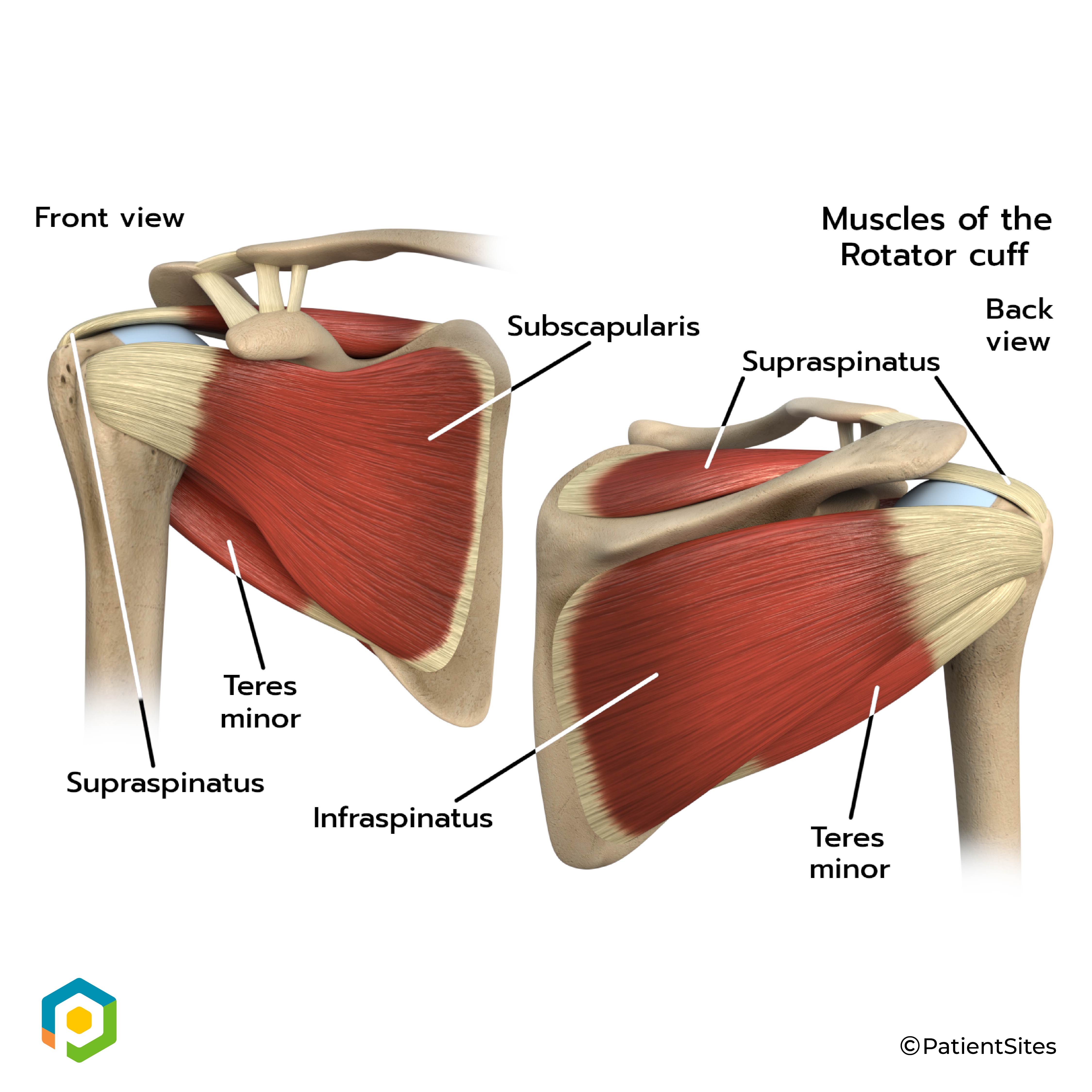 The rotator cuff connects the humerus to the scapula. The rotator cuff is formed by the tendons of four muscles: the supraspinatus, infraspinatus, teres minor, and subscapularis. Rotator Cuff
